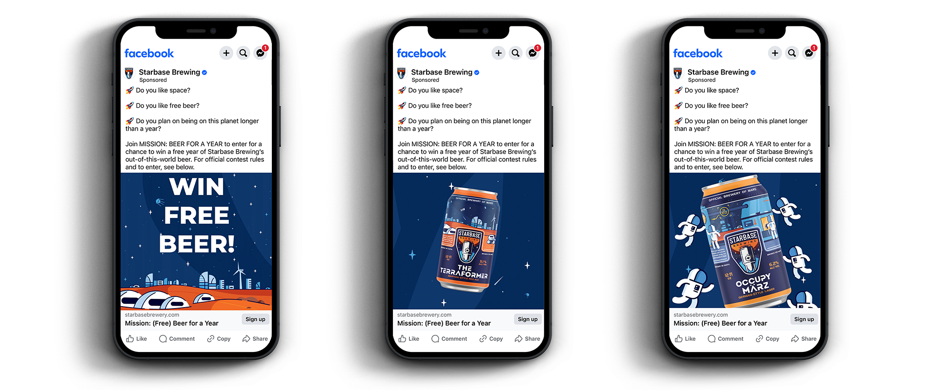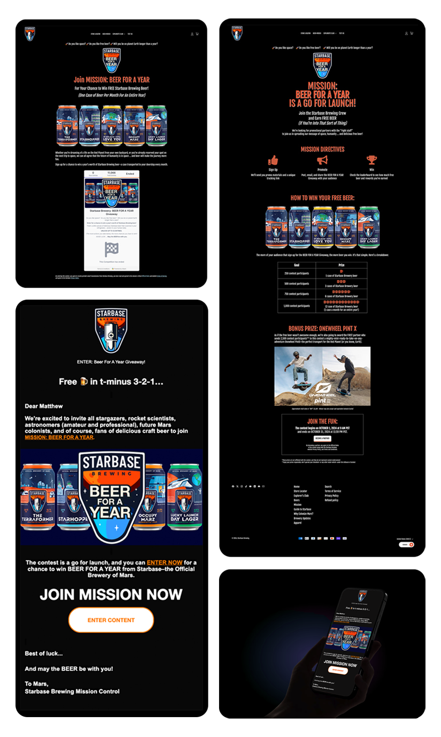 For Starbase Brewing, we launched a 90-day “Beer For A Year” giveaway that increased online sales by 69%, more than doubled newsletter signups, and grew their socials exponentially.